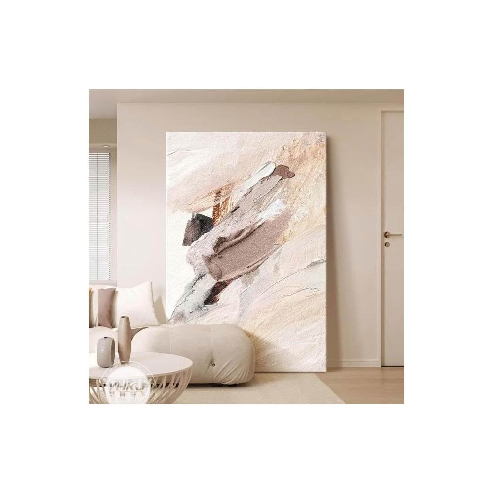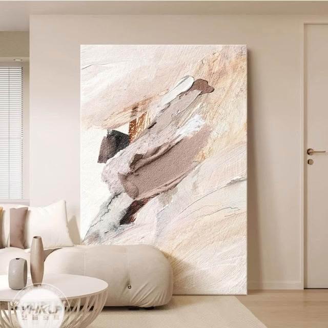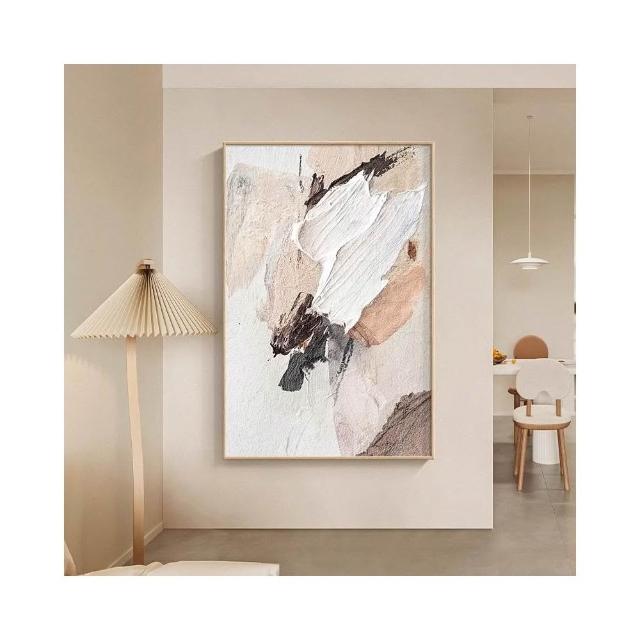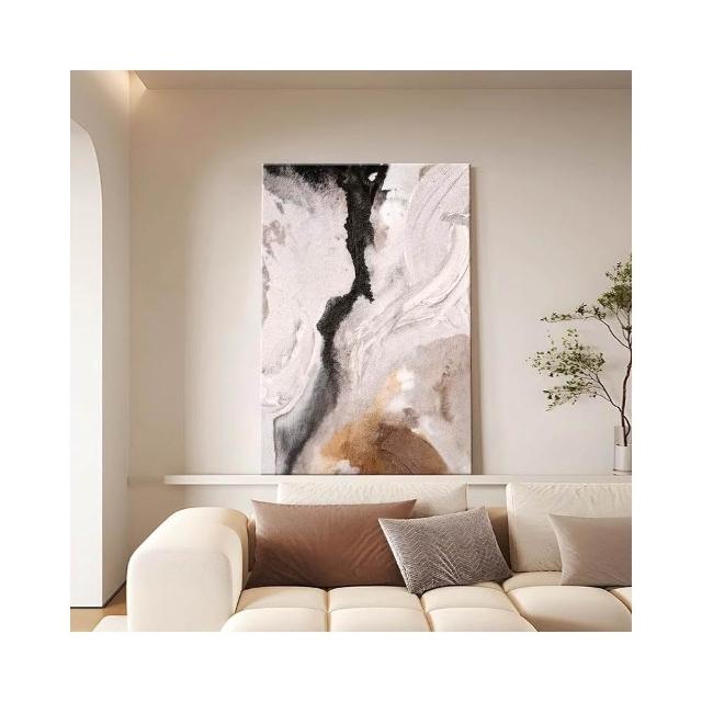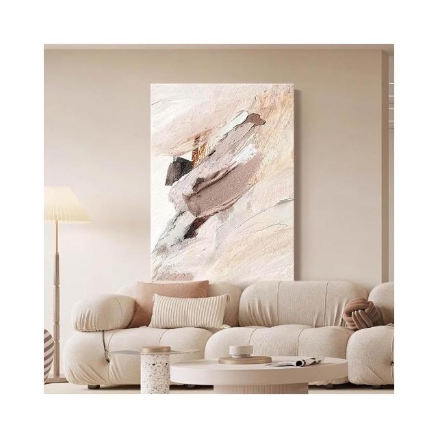 奶油風客廳裝飾畫簡約沙發背景牆落地掛畫高級抽象肌理感玄關壁畫