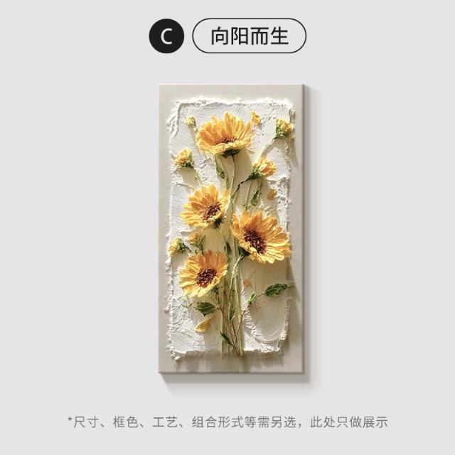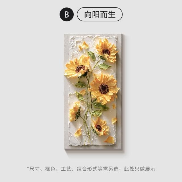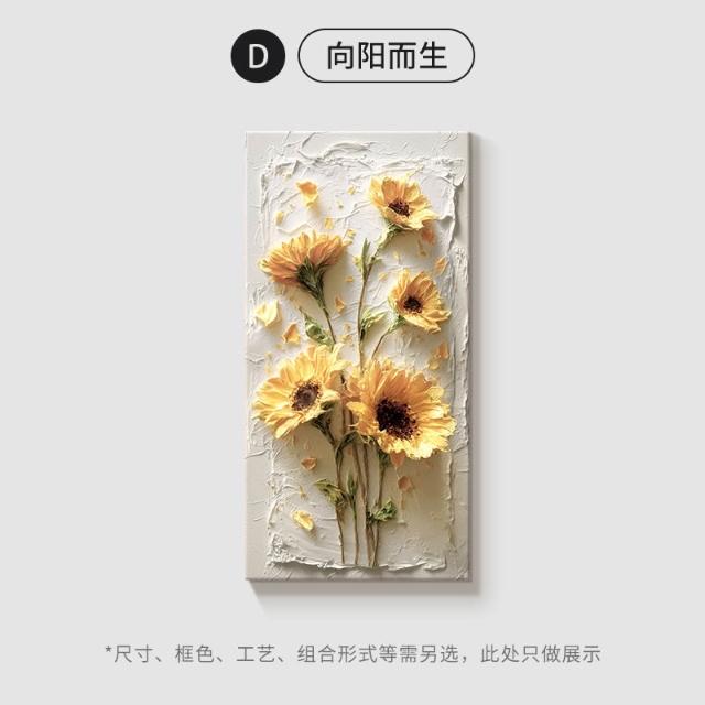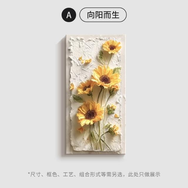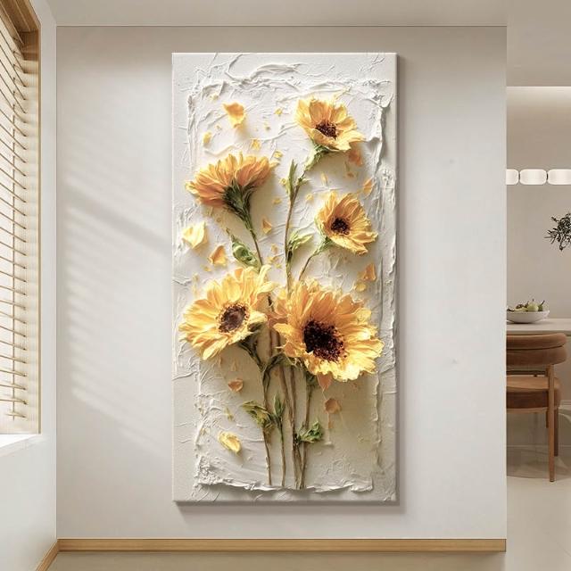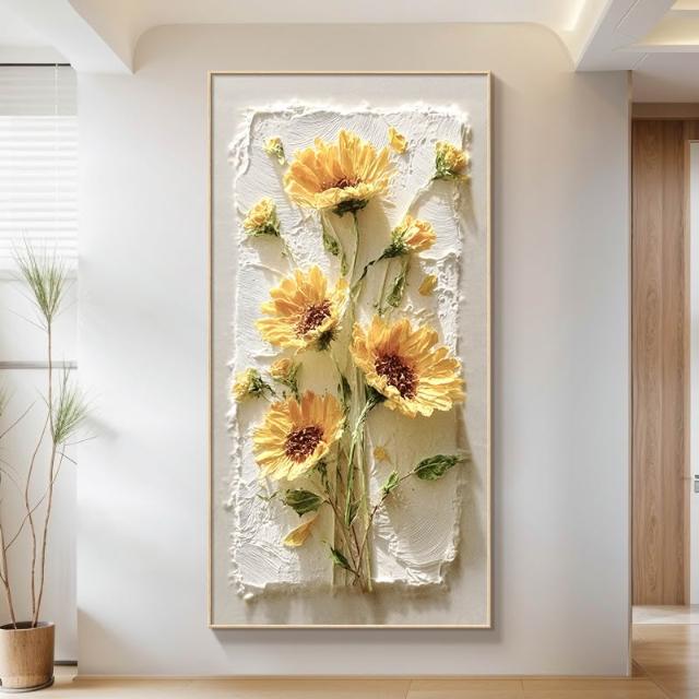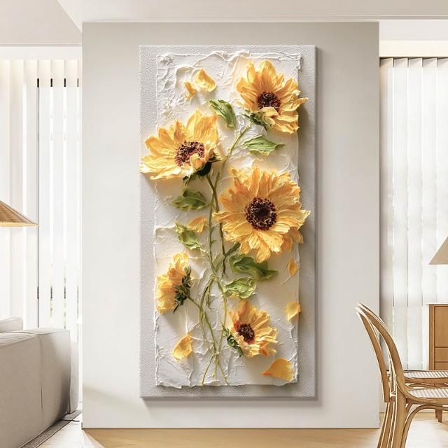奶油風向日葵玄關裝飾畫豎版肌理感入戶正對門掛畫走廊過道牆壁畫