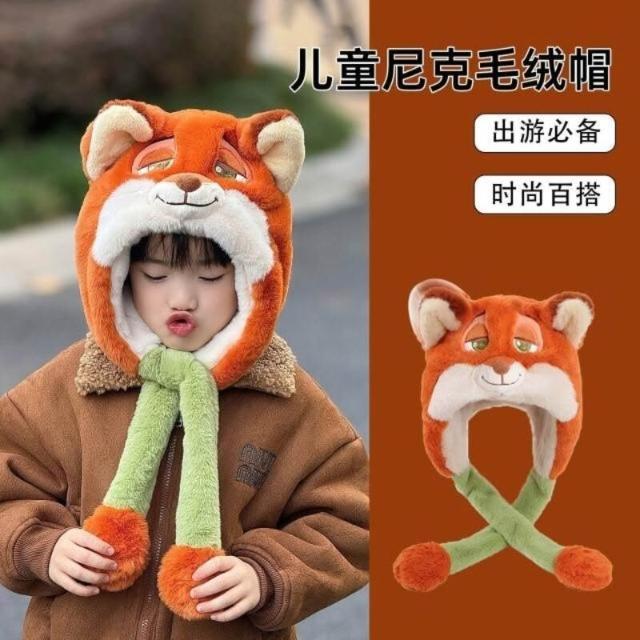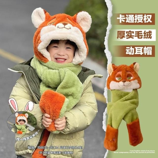狐狸尼克帽子圍巾一體兒童男孩女孩圍脖耳朵會動的朱迪冬季 寶寶秋冬季保暖加厚毛絨帽