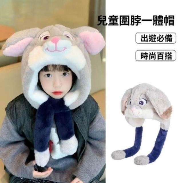 狐狸尼克帽子圍巾一體兒童男孩女孩圍脖耳朵會動的朱迪冬季 寶寶秋冬季保暖加厚毛絨帽