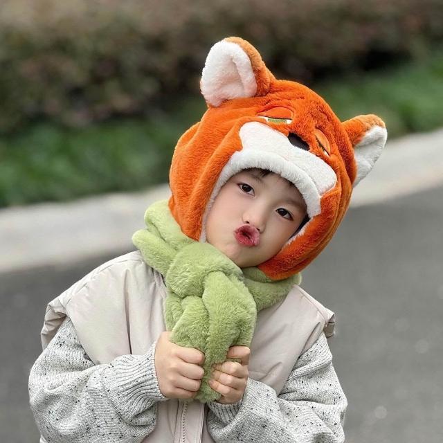 狐狸尼克帽子圍巾一體兒童男孩女孩圍脖耳朵會動的朱迪冬季 寶寶秋冬季保暖加厚毛絨帽