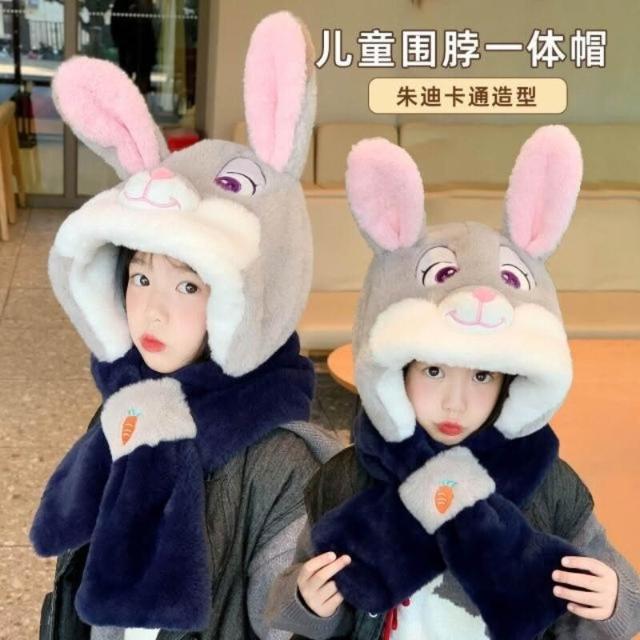 狐狸尼克帽子圍巾一體兒童男孩女孩圍脖耳朵會動的朱迪冬季 寶寶秋冬季保暖加厚毛絨帽