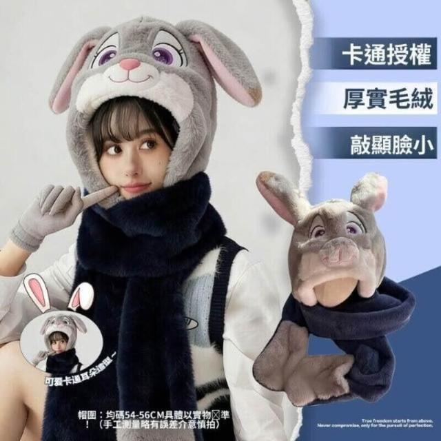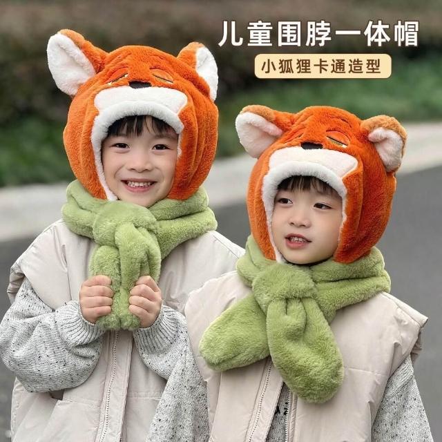 狐狸尼克帽子圍巾一體兒童男孩女孩圍脖耳朵會動的朱迪冬季 寶寶秋冬季保暖加厚毛絨帽