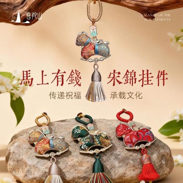 陀山2026馬年新款宋錦小馬掛件馬上有錢車掛禮盒新年禮物送禮