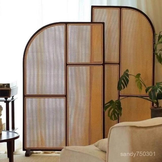 新品限時免運高品質熱銷新中式實木中古藤編屏風小客廳隔斷正對門入戶玄關可移動臥室座屏