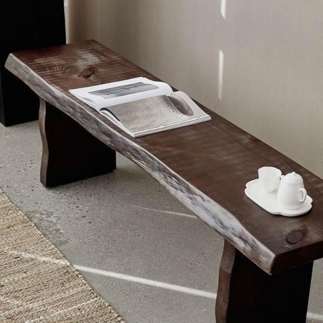 侘寂風不規則家用門口靠牆換鞋凳服裝店簡約長條北歐實木長凳原木