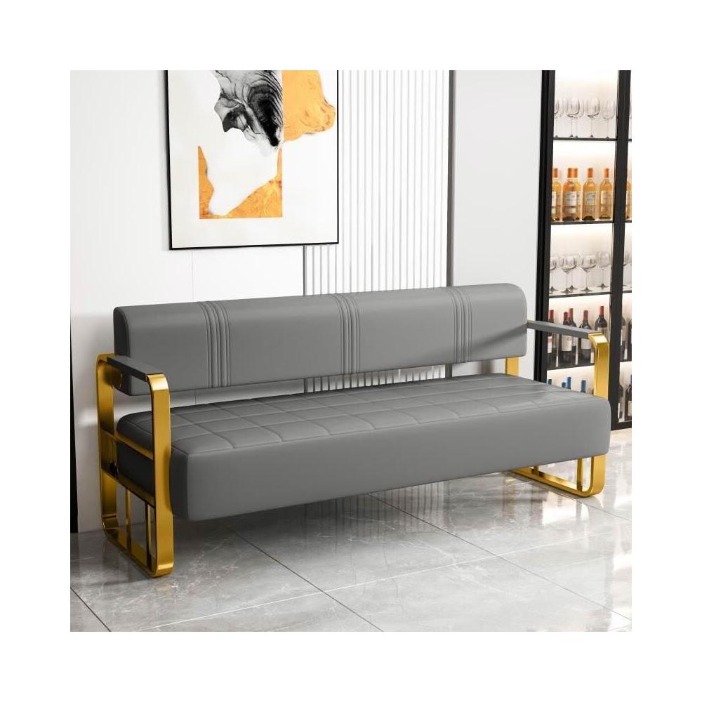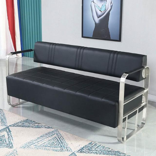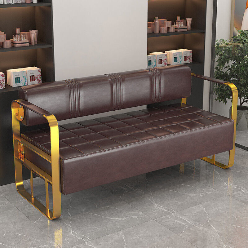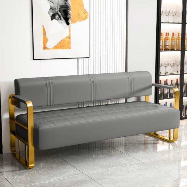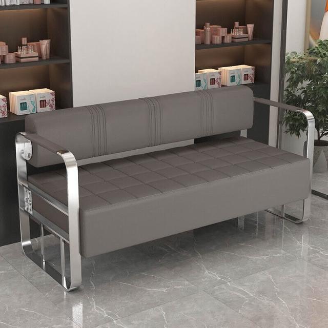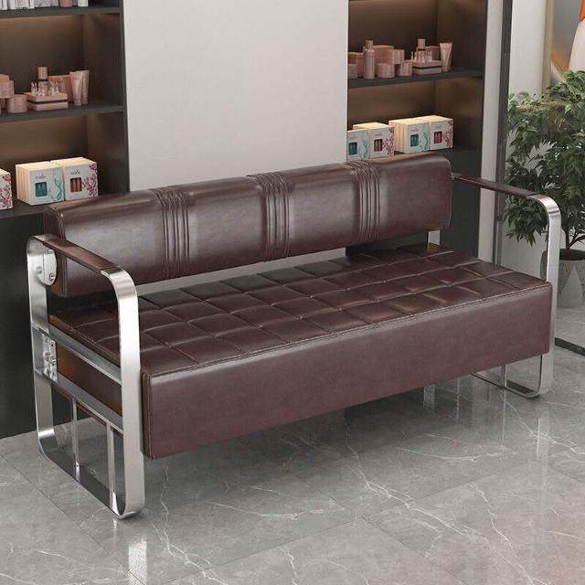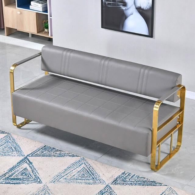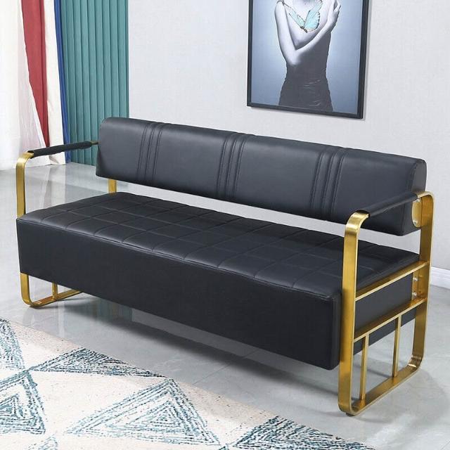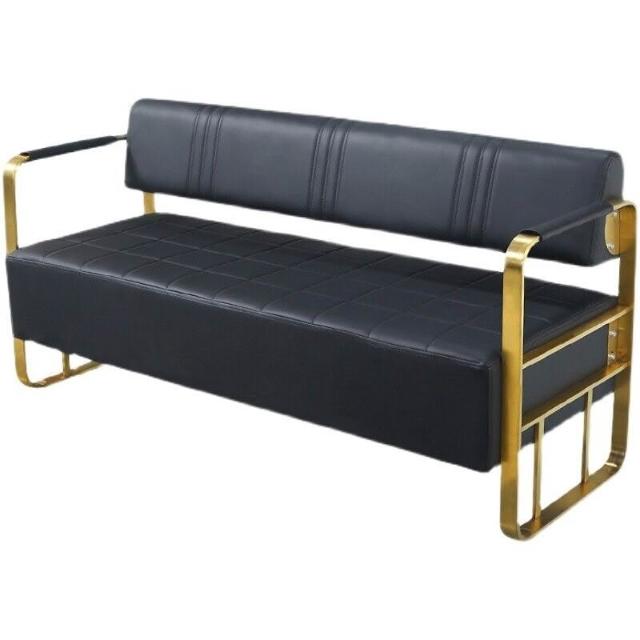 小陳家居理髮店美髮店等候椅美容服裝店休息區不鏽鋼鍍金沙發等候區長條椅