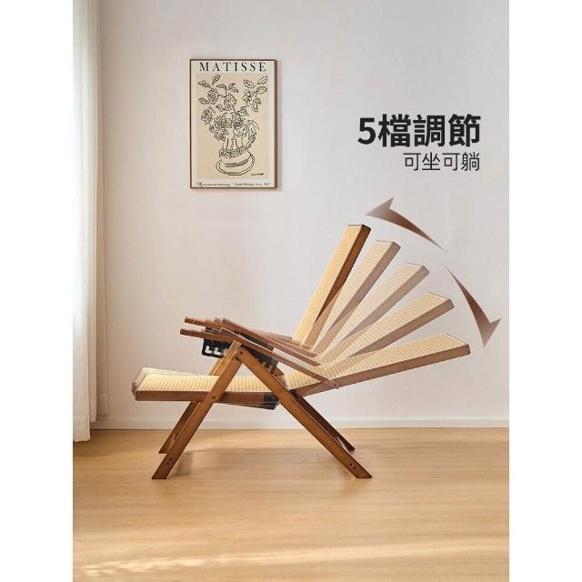 小陳家居藤編竹躺椅折疊午休可坐可躺戶外老人專用籐椅結實耐用陽臺休閒椅