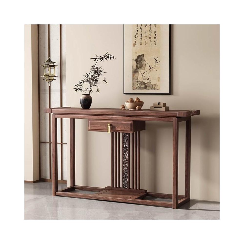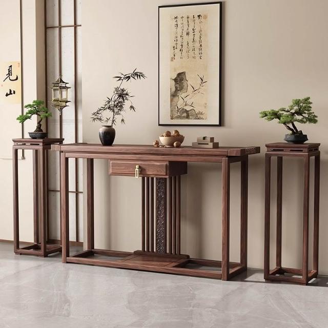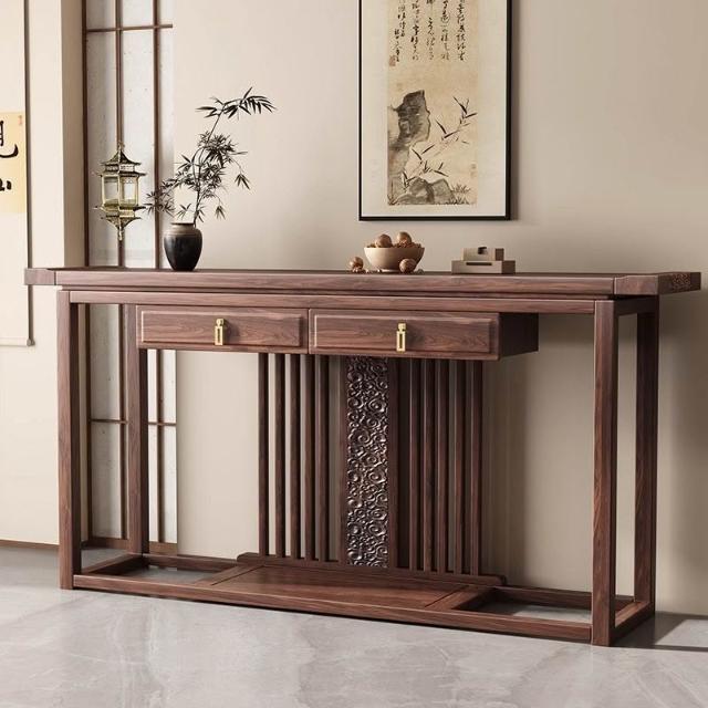 供桌 新中式實木玄關櫃 南美胡桃木入戶門神臺條案客廳家用