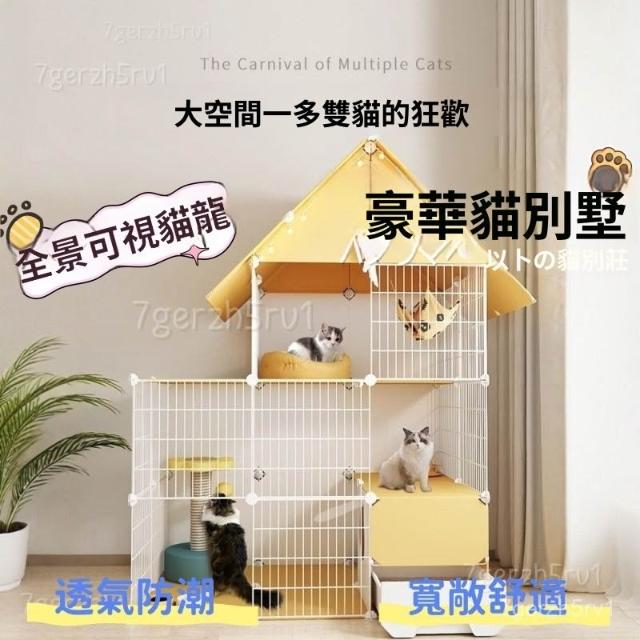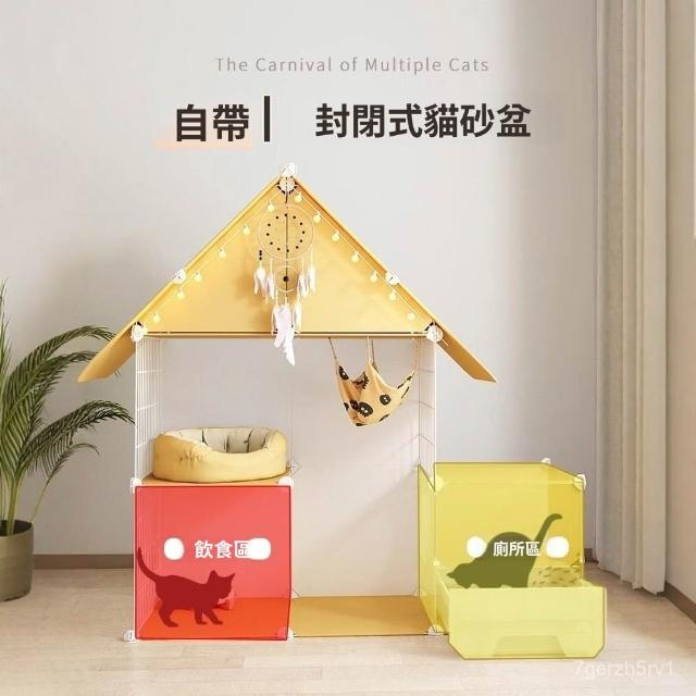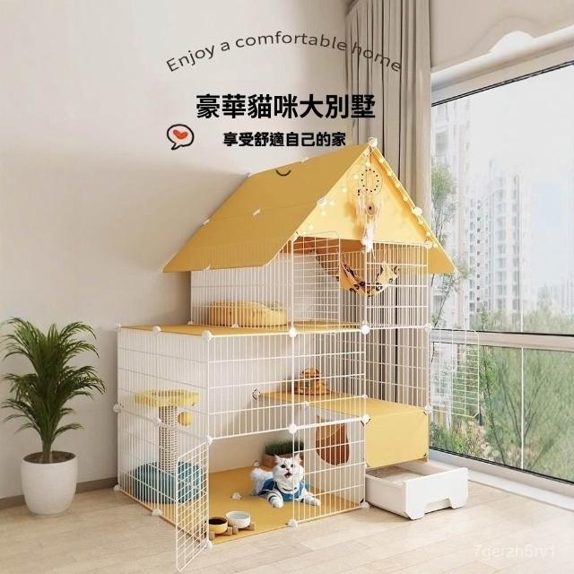 ⚡免運⚡貓籠 貓別墅帶厠所一體貓咪籠子家用室內超大自由空間一室一廳一衛貓窩 貓別墅 豪華貓籠 寵物籠子 貓櫃 貓窩 貓屋