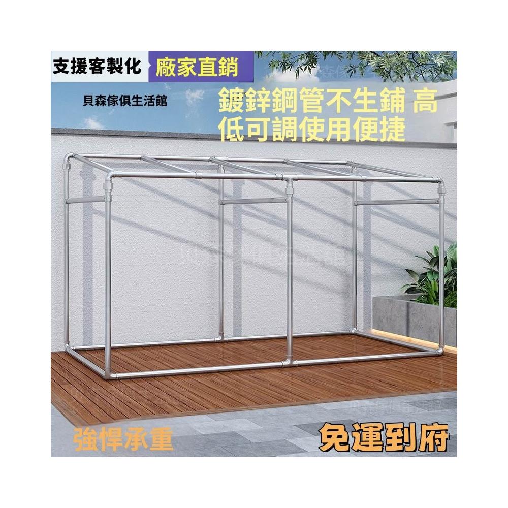免運鍍鋅鋼管衣架 車棚架 落地遮陽架鷄棚架防風簡易棚搭建型葡萄架 曬衣架 晾衣架 掛衣架 晾衣桿 大型晾衣架