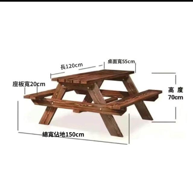 免運 可開發票 戶外實木啤酒桌 戶外防腐碳化桌椅 組閤陽臺室外桌椅 帶傘公園實木連體餐桌 庭院別墅陽臺露臺桌 防腐木桌椅