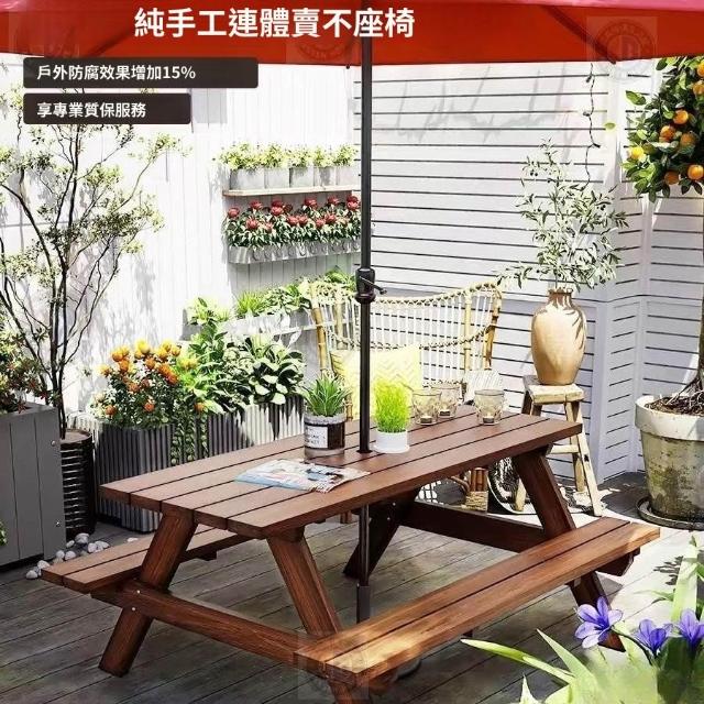 免運 可開發票 戶外實木啤酒桌 戶外防腐碳化桌椅 組閤陽臺室外桌椅 帶傘公園實木連體餐桌 庭院別墅陽臺露臺桌 防腐木桌椅