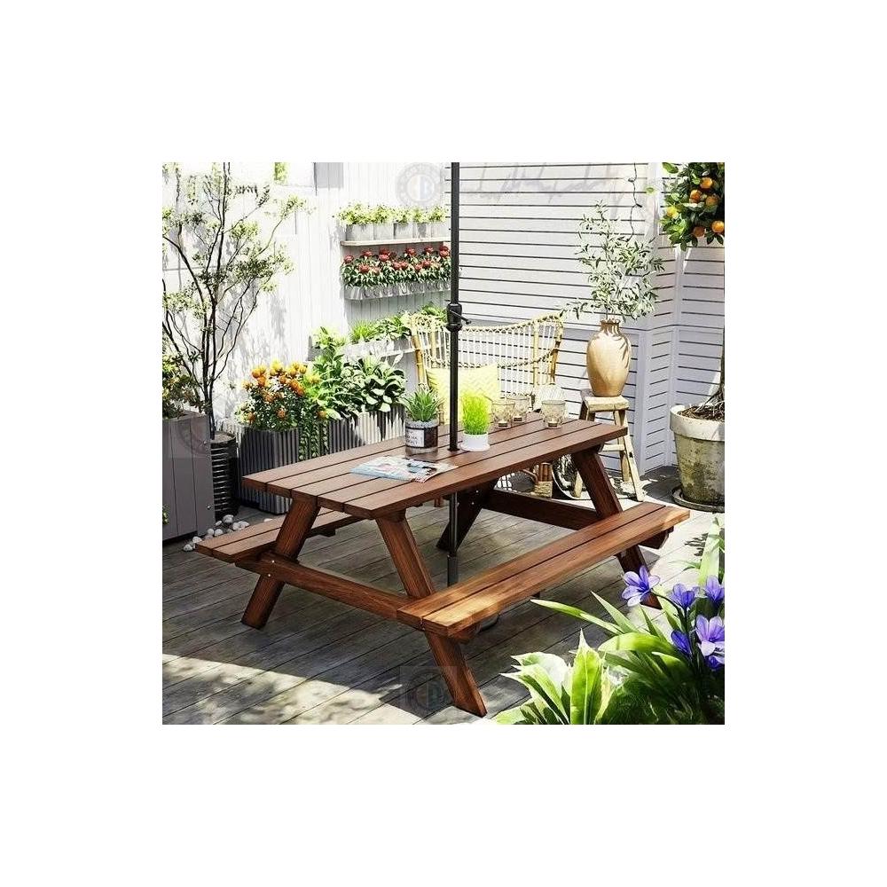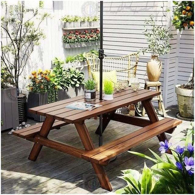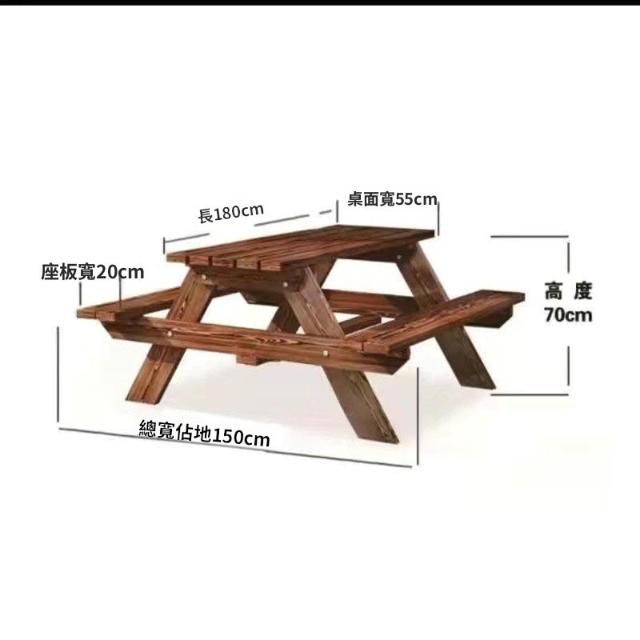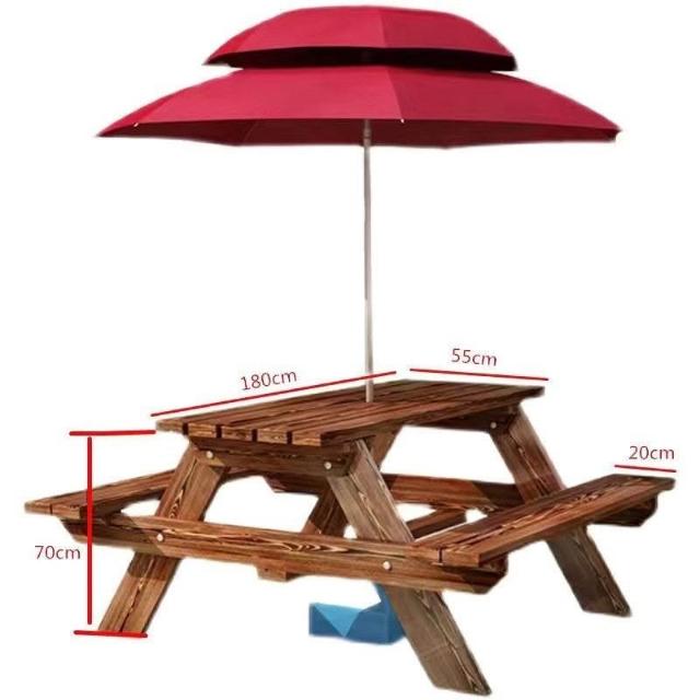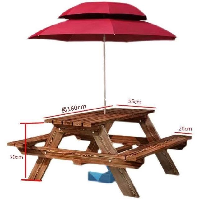 免運 可開發票 戶外實木啤酒桌 戶外防腐碳化桌椅 組閤陽臺室外桌椅 帶傘公園實木連體餐桌 庭院別墅陽臺露臺桌 防腐木桌椅