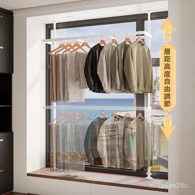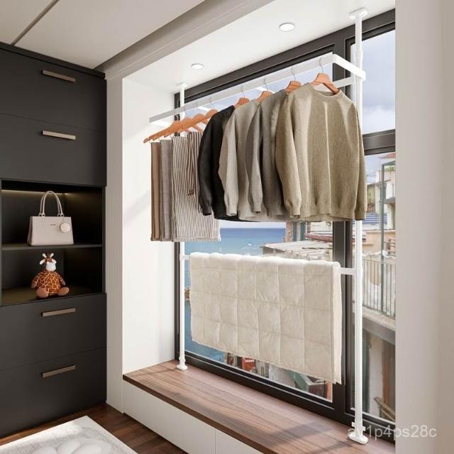 飄窗頂天立地晾衣架陽臺家用免打孔落地室內曬被子窗戶掛衣架神器 頂天立地衣架 立式衣架 晾衣架 落地吊衣架 Y82G