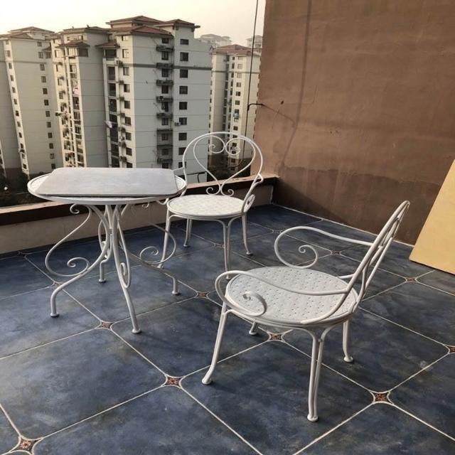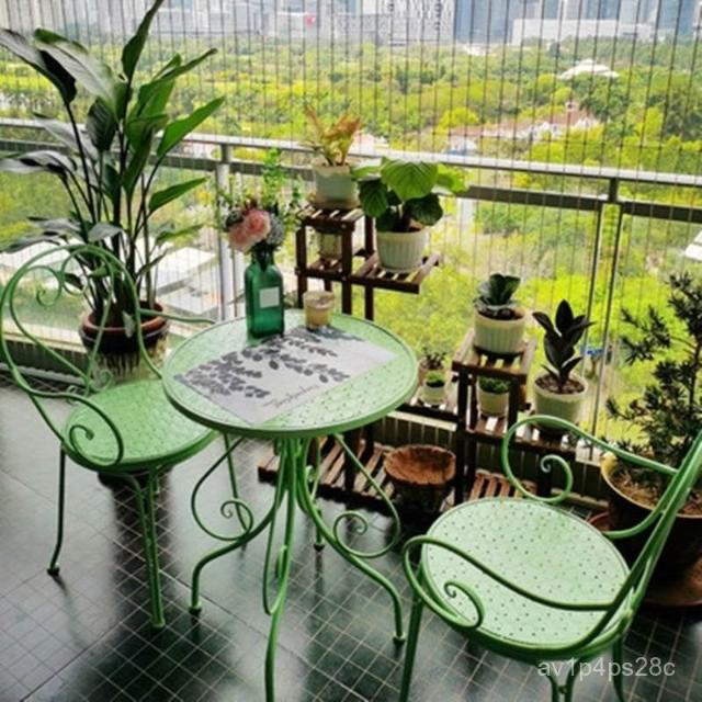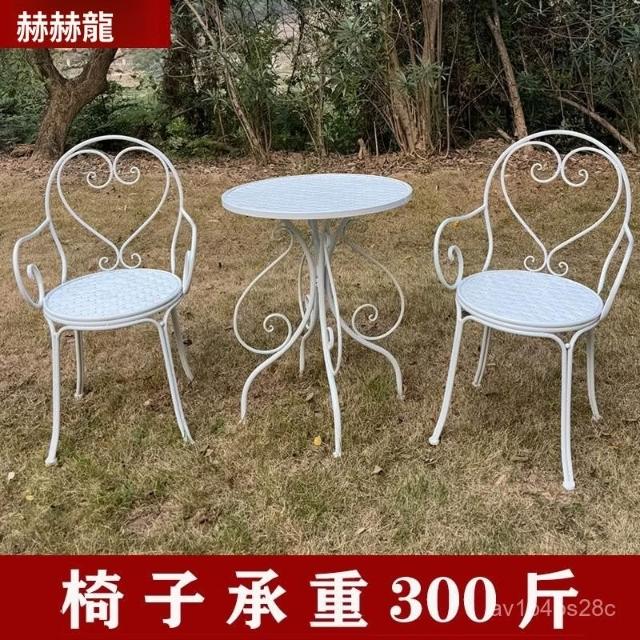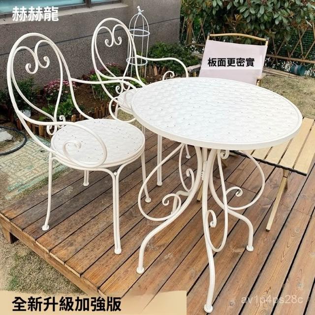 田園休閒鐵藝桌椅套件陽臺庭院花園桌子椅子咖啡奶茶店桌椅三件套 戶外桌椅 庭院桌椅 花園桌椅 陽臺桌椅 8EMF