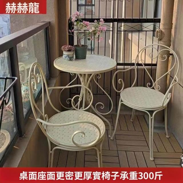 田園休閒鐵藝桌椅套件陽臺庭院花園桌子椅子咖啡奶茶店桌椅三件套 戶外桌椅 庭院桌椅 花園桌椅 陽臺桌椅 8EMF