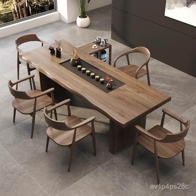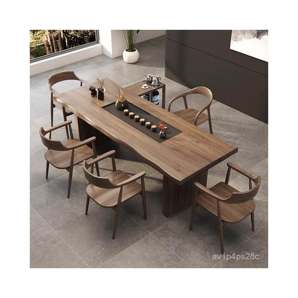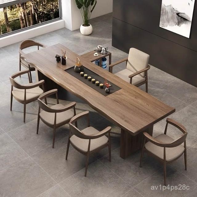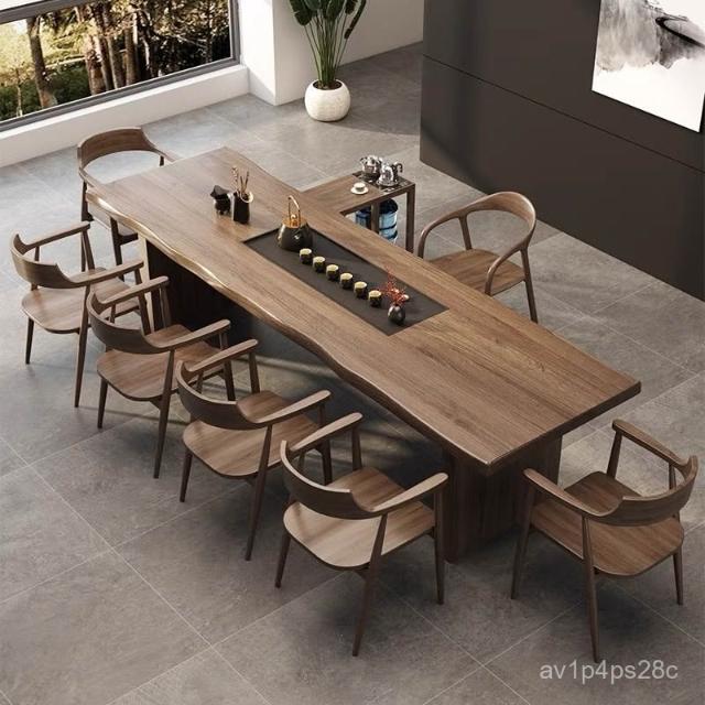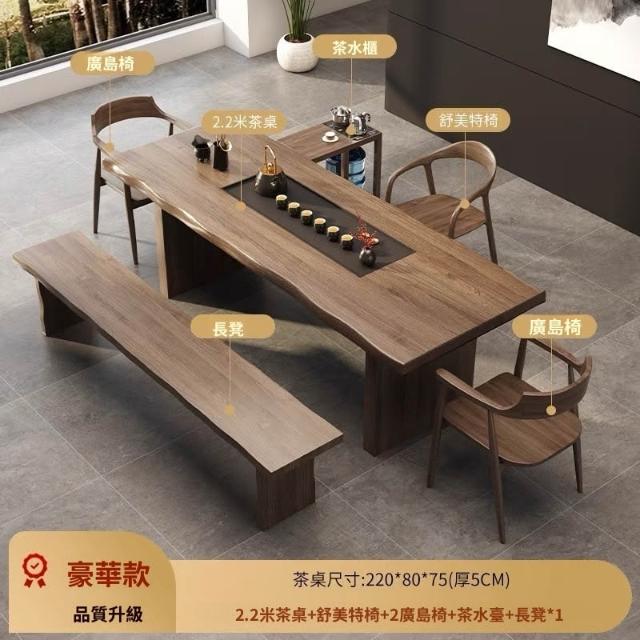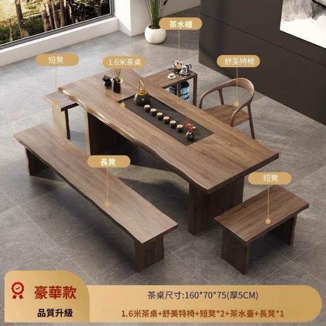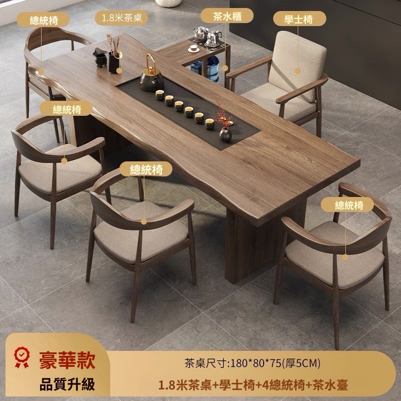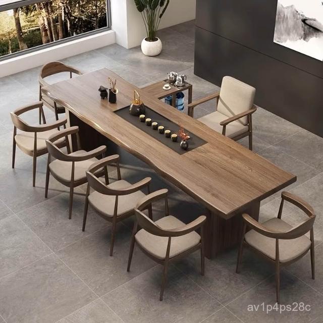 可開發票實木茶桌一體茶臺椅組閤現代簡約新中式辦公室功夫禪意玄關泡茶桌 UKQQ