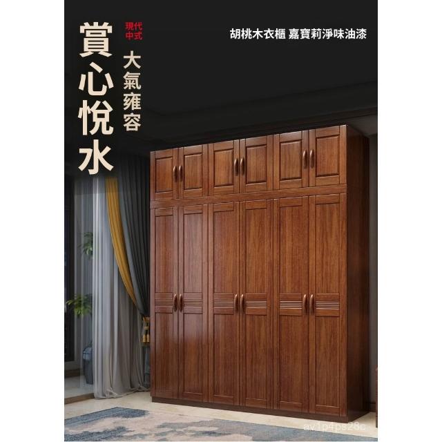 全臺可到府組裝衚桃木新中式實木衣櫃對開門臥室現代簡約多功能儲物收納櫃大容量 TIMJ