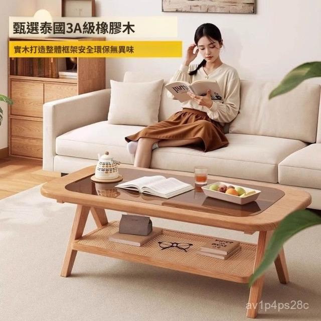 廠家直銷實木茶幾客廳家用2025新款藤編桌子輕奢高級感茶臺小戶型陽臺茶桌 I19R