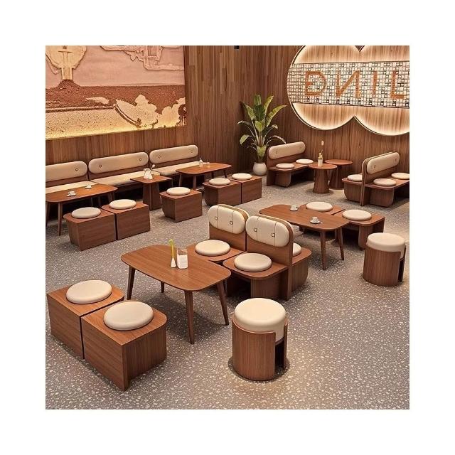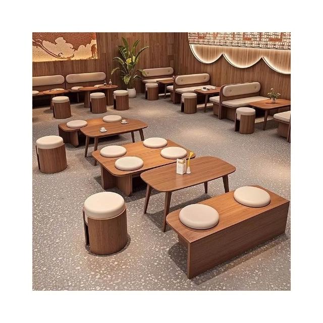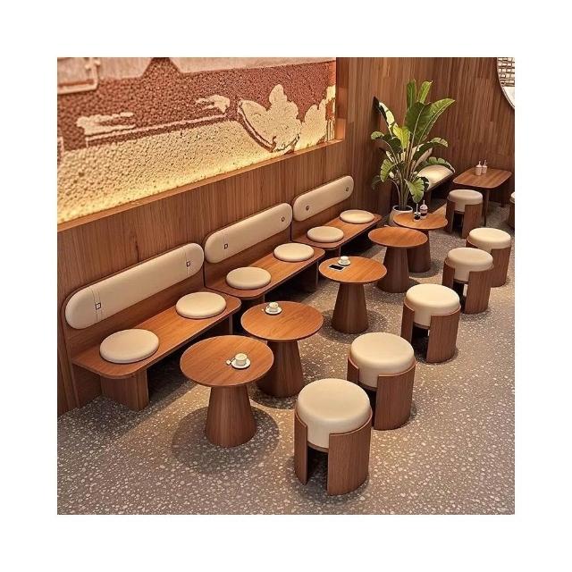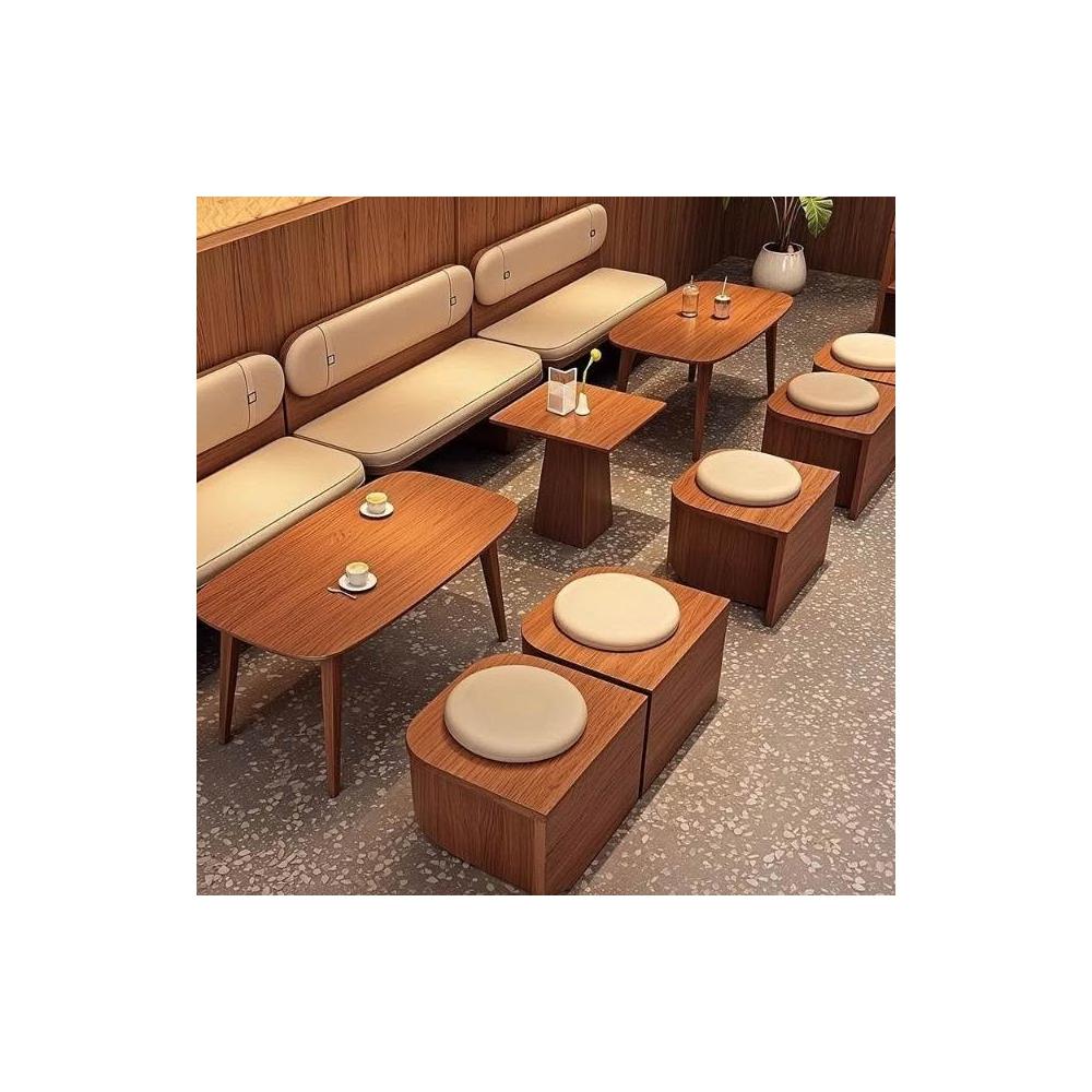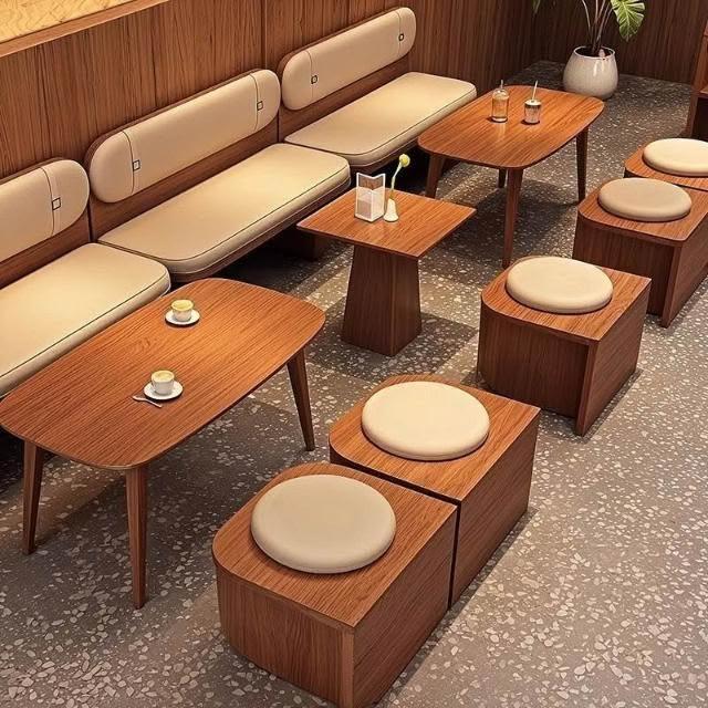 網紅桌椅 原木色茶幾 長條沙發凳 咖啡廳奶茶店蛋糕休息區卡座沙廠家