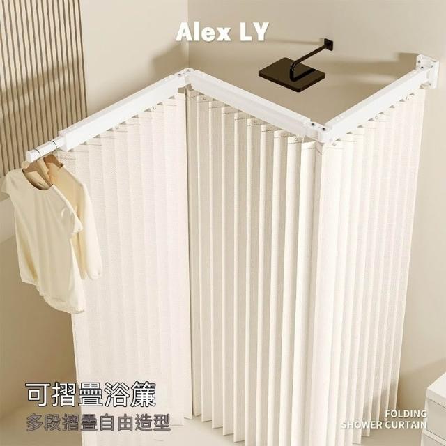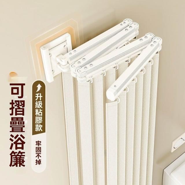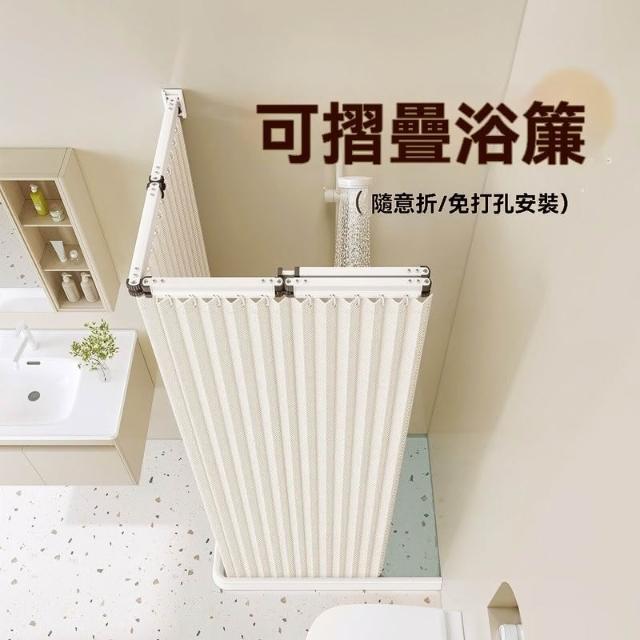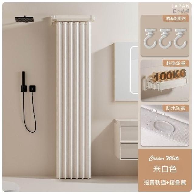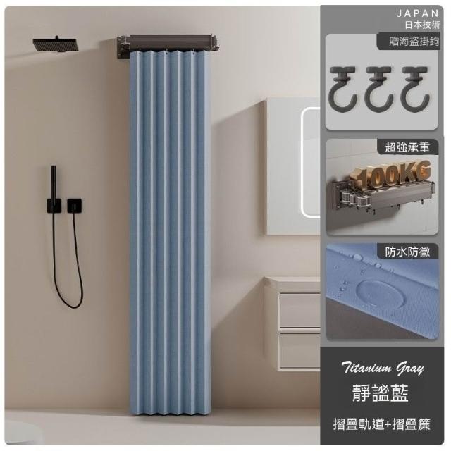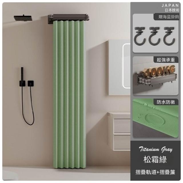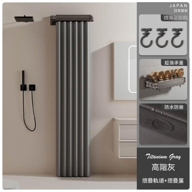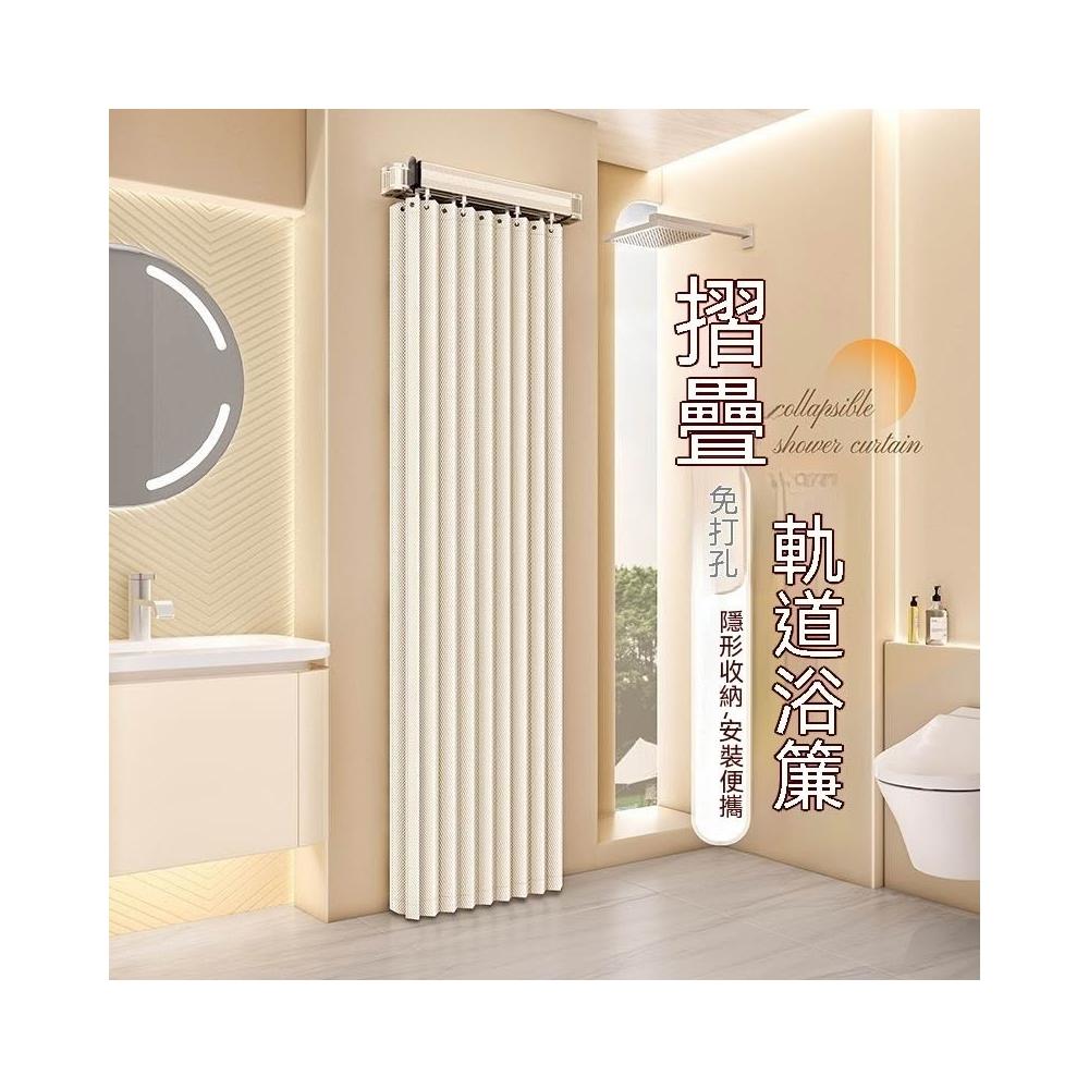 高檔衛生間可摺疊軌道浴簾浴室淋浴隔斷簾免打孔晾衣隱形防水乾溼