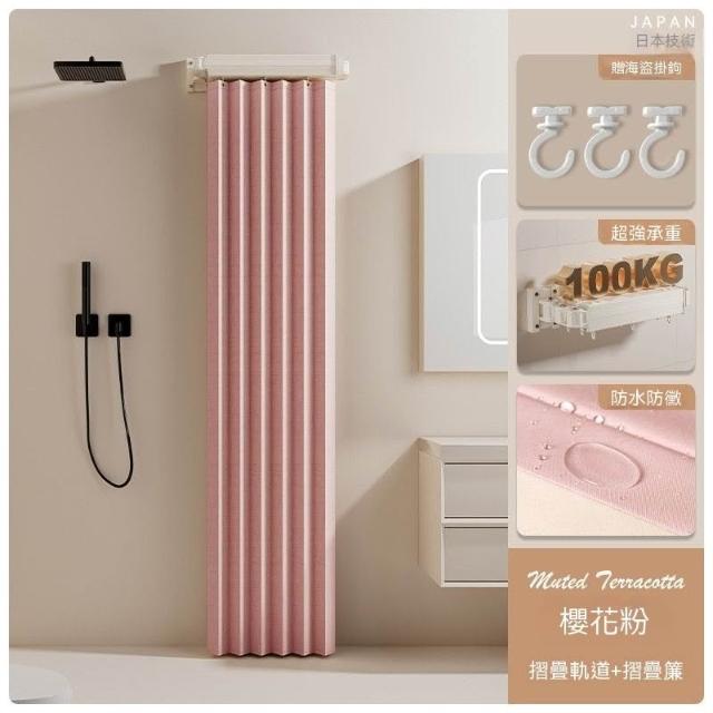 高檔衛生間可摺疊軌道浴簾浴室淋浴隔斷簾免打孔晾衣隱形防水乾溼