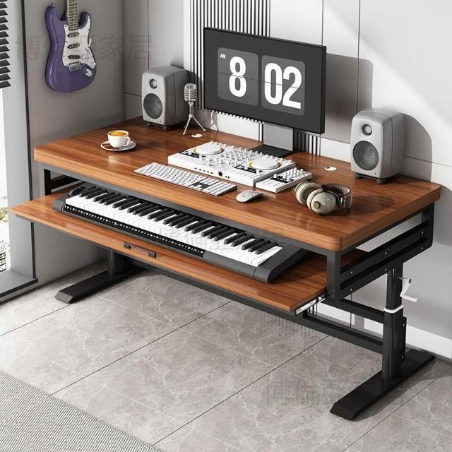 高品質可打統編 琴桌 琴譜桌 實木升降編曲工作臺 電子鋼琴桌 midi鍵盤古筝錄音室音樂升降電腦桌