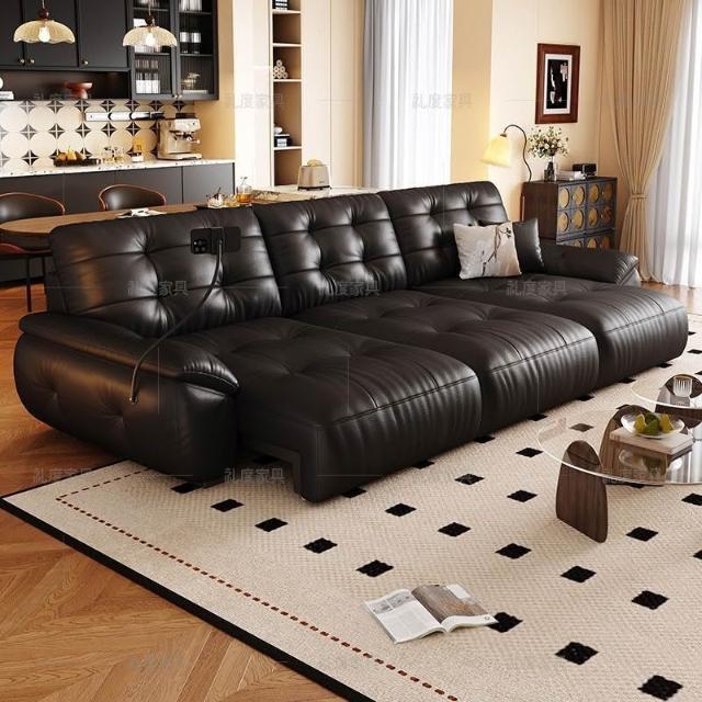 悅菲納勞倫斯零靠牆電動功能沙發牀簡約伸縮客廳頭層牛皮電動沙發