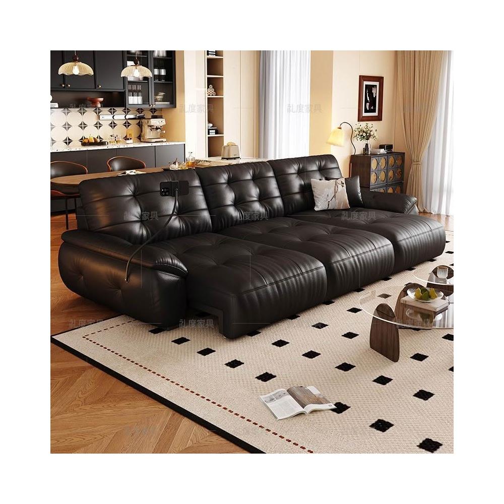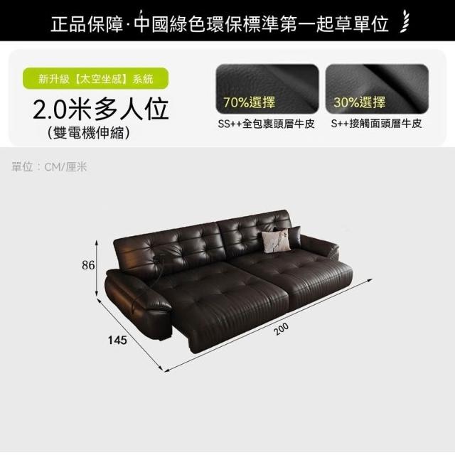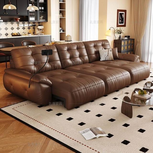 悅菲納勞倫斯零靠牆電動功能沙發牀簡約伸縮客廳頭層牛皮電動沙發