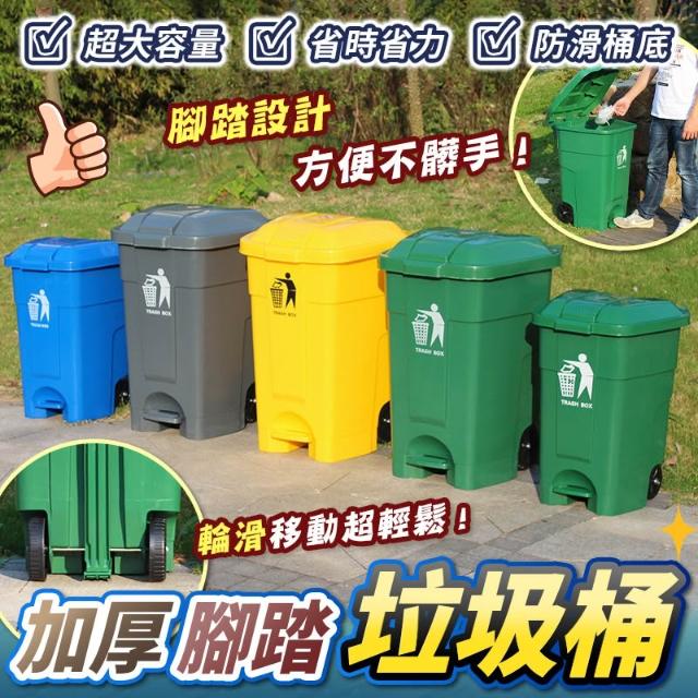 加厚腳踏式垃圾桶70L|戶外環保桶 大容量腳踩分類垃圾桶 附輪好移動 防滑耐重