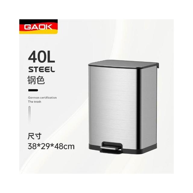 不鏽鋼垃圾桶 靜音降緩 免踩定蓋 德國GAOK 廚房大容量不銹鋼腳踩垃圾桶傢用腳踏式客廳衛生間輕奢