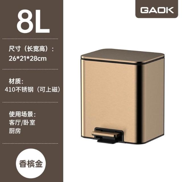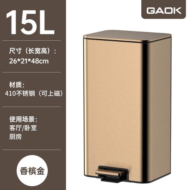 不鏽鋼垃圾桶 靜音降緩 免踩定蓋 德國GAOK 廚房大容量不銹鋼腳踩垃圾桶傢用腳踏式客廳衛生間輕奢