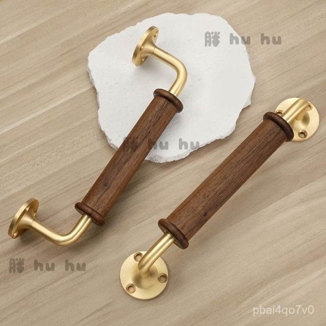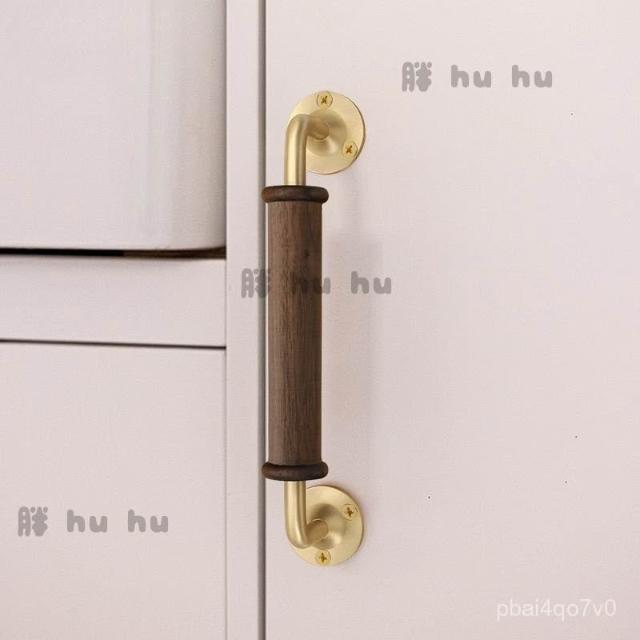 高檔輕奢黑衚桃木櫃門拉手 櫥櫃衣櫃木門拉手 黃銅底座明裝門把手
