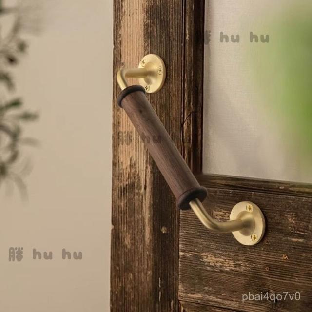 高檔輕奢黑衚桃木櫃門拉手 櫥櫃衣櫃木門拉手 黃銅底座明裝門把手