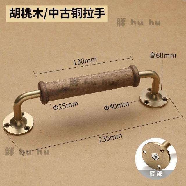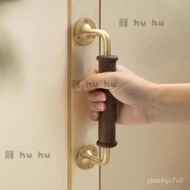 高檔輕奢黑衚桃木櫃門拉手 櫥櫃衣櫃木門拉手 黃銅底座明裝門把手
