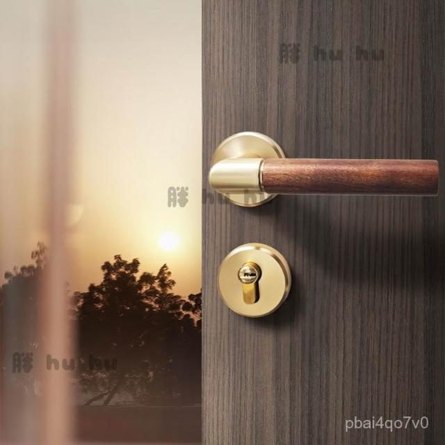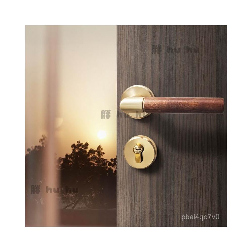 衚桃木臥室中式門鎖室內房間磁吸分體門把手 複古把手 靜音家用房門把手