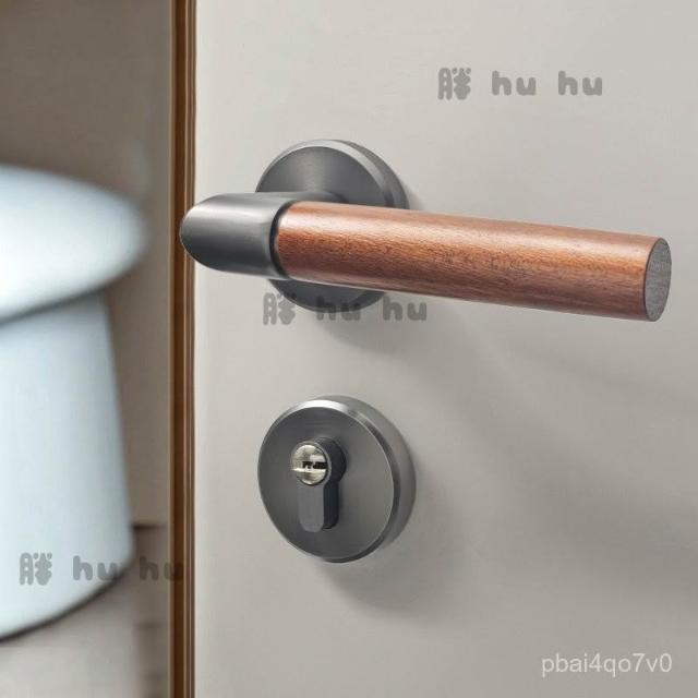 衚桃木臥室中式門鎖室內房間磁吸分體門把手 複古把手 靜音家用房門把手