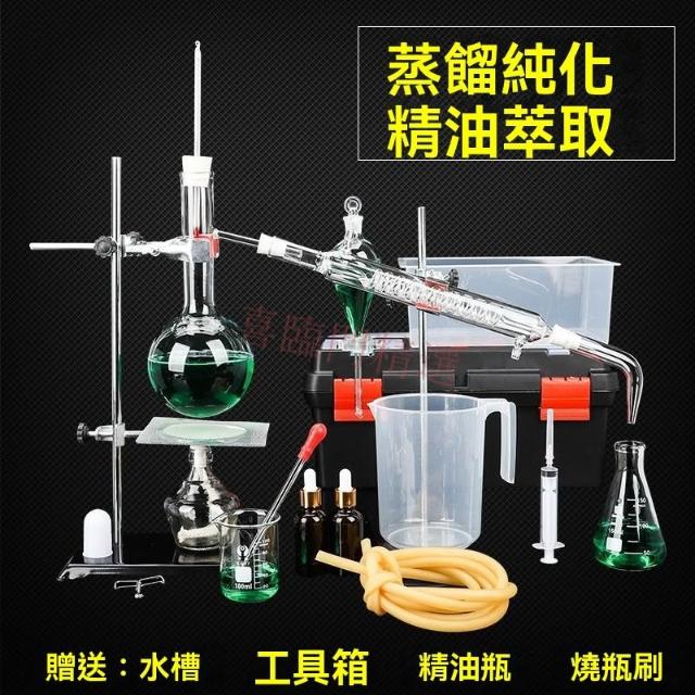 全套蒸餾裝置 蒸餾器 精油蒸餾 萃取裝置蒸餾水裝置提純提煉精油蒸餾器 蛇形蒸餾冷凝管化學實驗器材蒸餾燒瓶