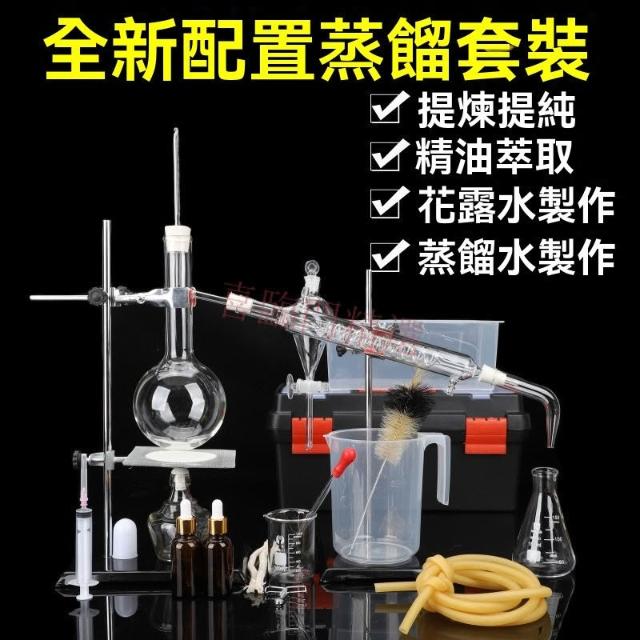 全套蒸餾裝置 蒸餾器 精油蒸餾 萃取裝置蒸餾水裝置提純提煉精油蒸餾器 蛇形蒸餾冷凝管化學實驗器材蒸餾燒瓶