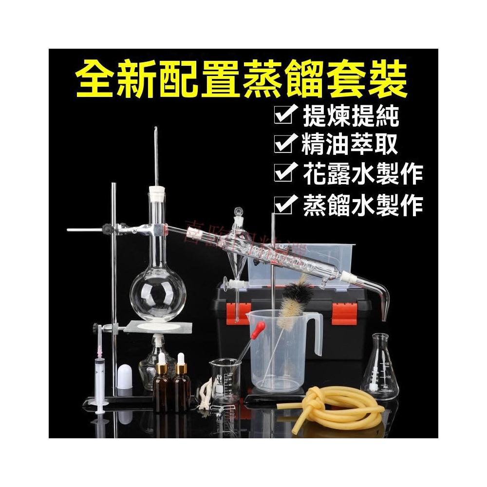 全套蒸餾裝置 蒸餾器 精油蒸餾 萃取裝置蒸餾水裝置提純提煉精油蒸餾器 蛇形蒸餾冷凝管化學實驗器材蒸餾燒瓶