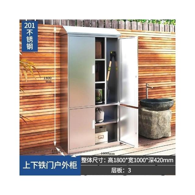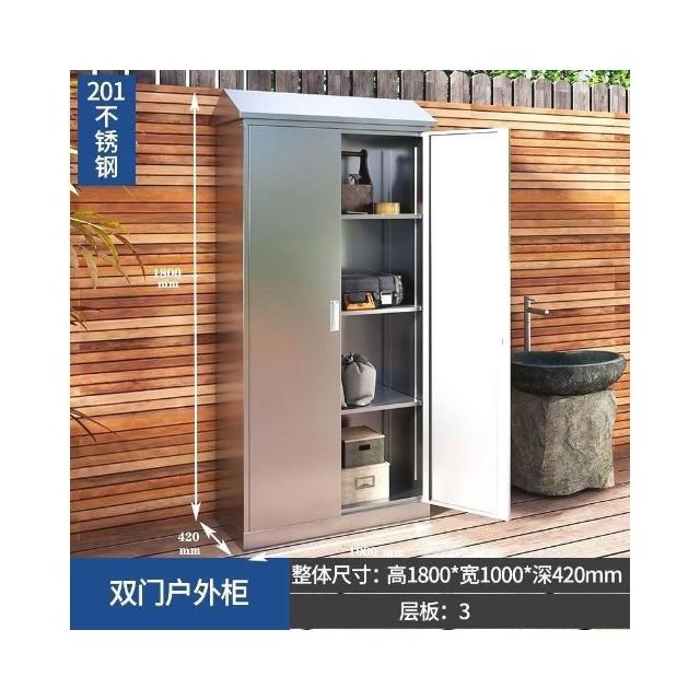 304不銹鋼花園儲物櫃 304不鏽鋼清潔收納櫃 不鏽鋼清潔櫃 工具雜物收納櫃 帶鎖不鏽鋼陽臺庭院收納櫃