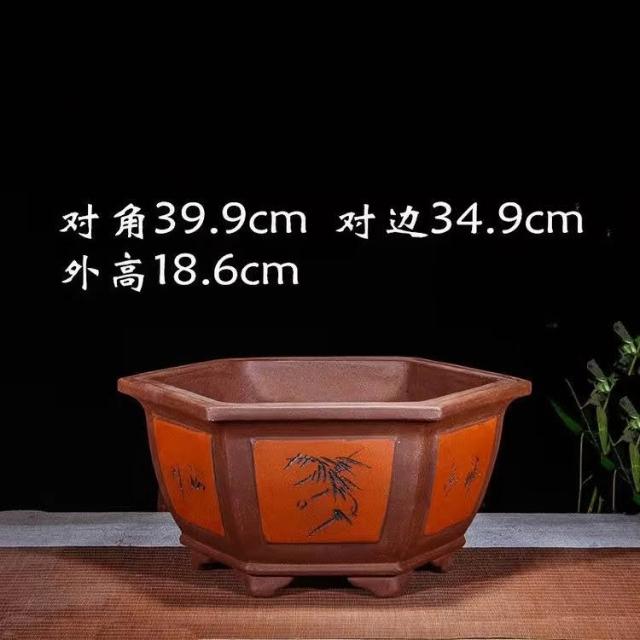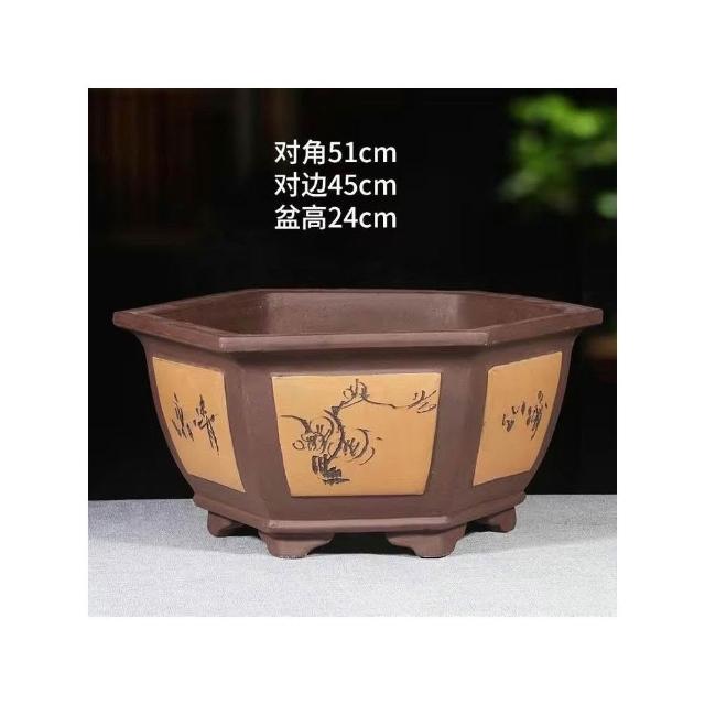 紫砂花盆 超大口徑六方盆 栽景盆 果樹盆 種菜盆 大型種植盆專用 種鐵樹大花盆 透氣花盆 發財樹花盆