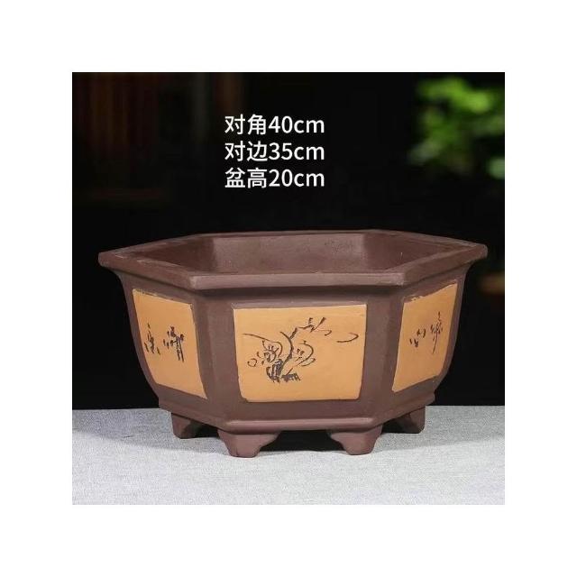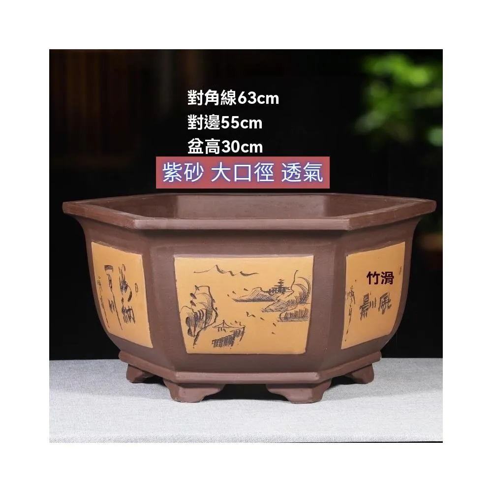 紫砂花盆 超大口徑六方盆 栽景盆 果樹盆 種菜盆 大型種植盆專用 種鐵樹大花盆 透氣花盆 發財樹花盆
