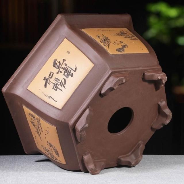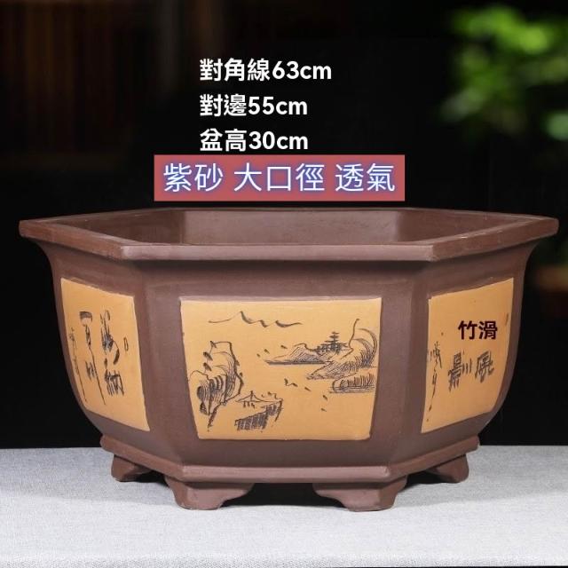 紫砂花盆 超大口徑六方盆 栽景盆 果樹盆 種菜盆 大型種植盆專用 種鐵樹大花盆 透氣花盆 發財樹花盆