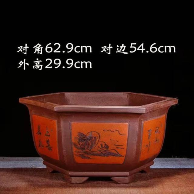 紫砂花盆 超大口徑六方盆 栽景盆 果樹盆 種菜盆 大型種植盆專用 種鐵樹大花盆 透氣花盆 發財樹花盆