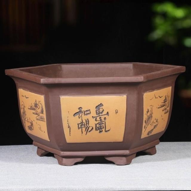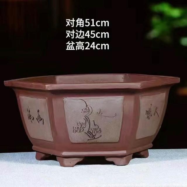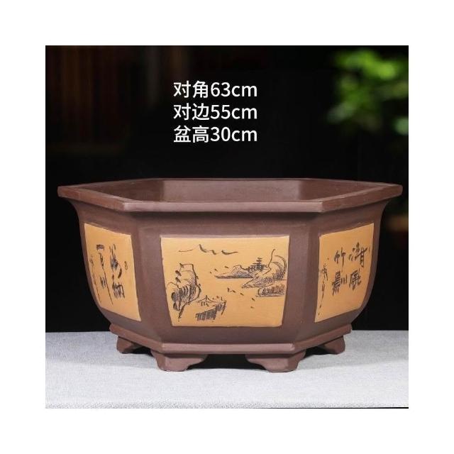 紫砂花盆 超大口徑六方盆 栽景盆 果樹盆 種菜盆 大型種植盆專用 種鐵樹大花盆 透氣花盆 發財樹花盆