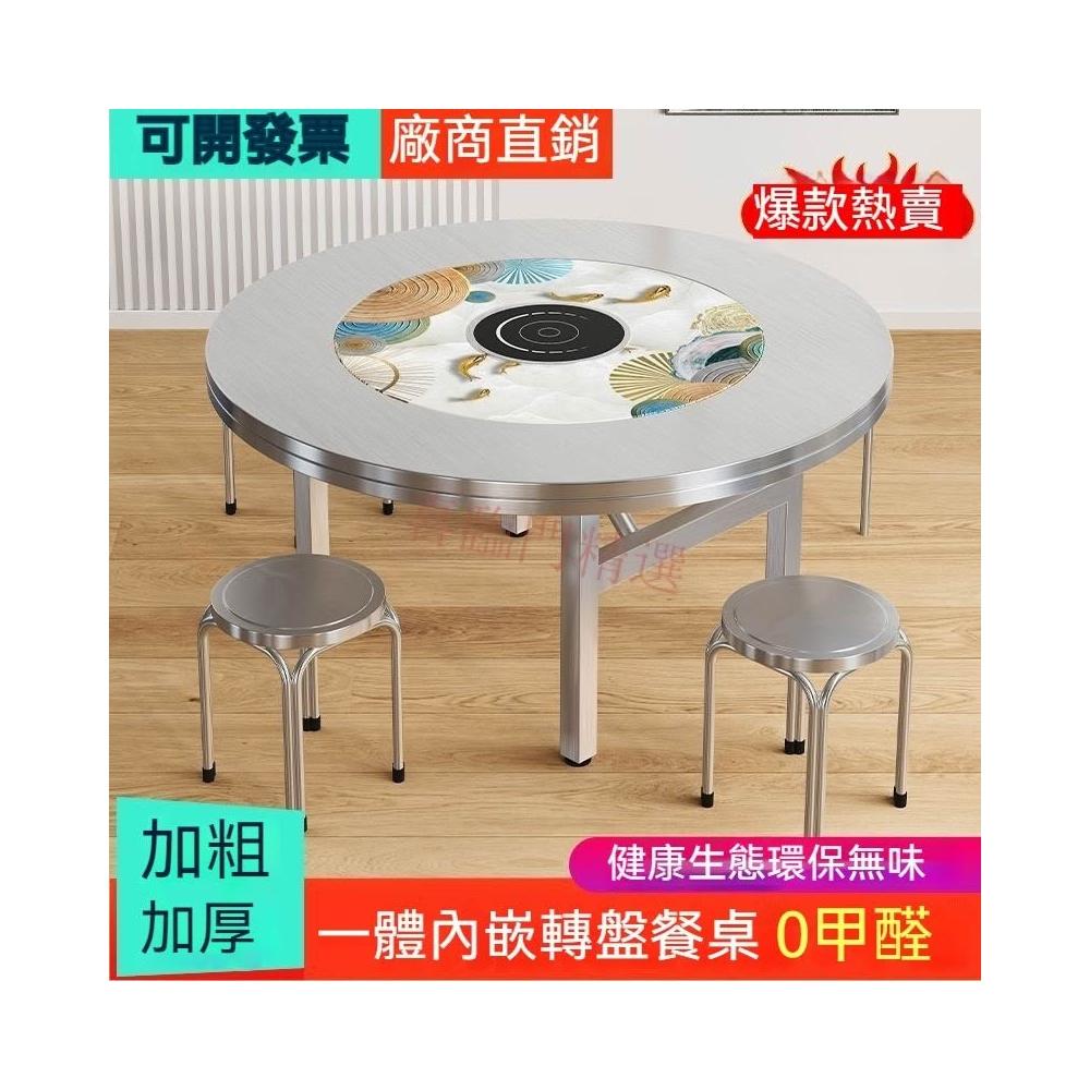 304不鏽鋼餐桌 全不銹鋼桌子 加厚3D彩圖不鏽鋼餐桌 可拆卸折疊 喫飯桌 不鏽鋼圓桌 休閒桌 白鐵桌