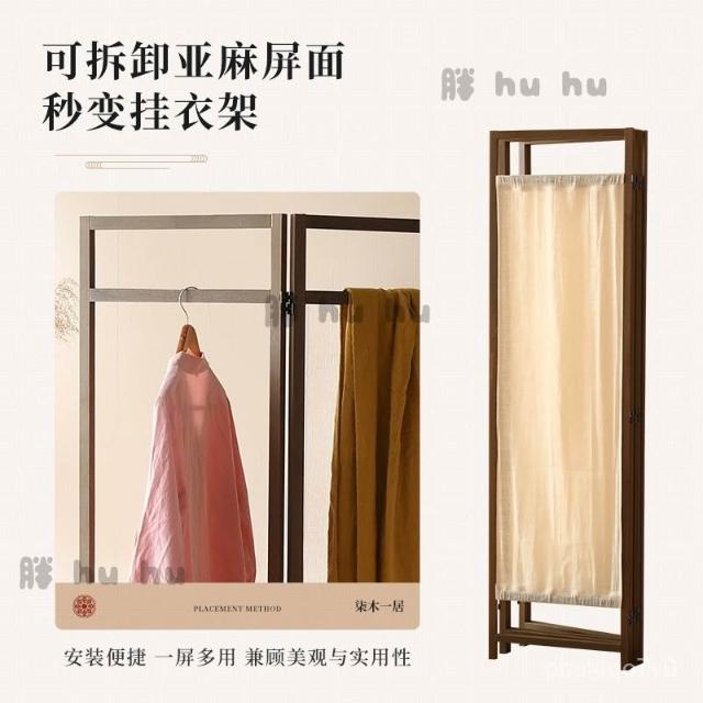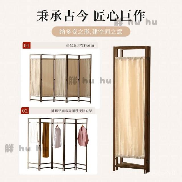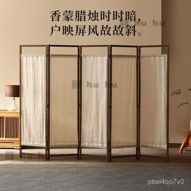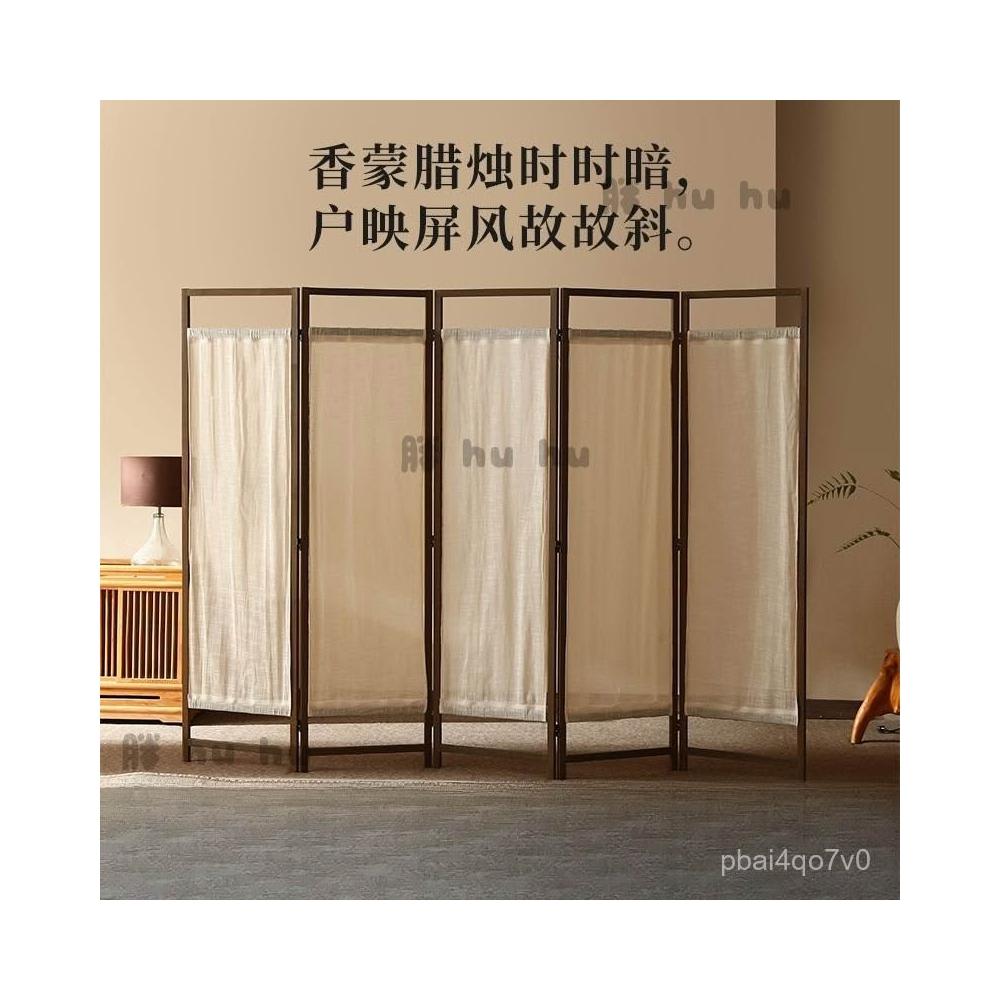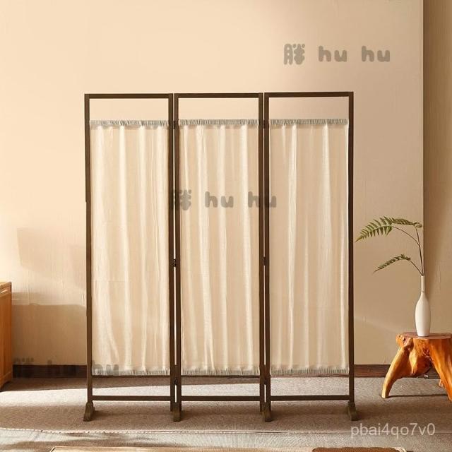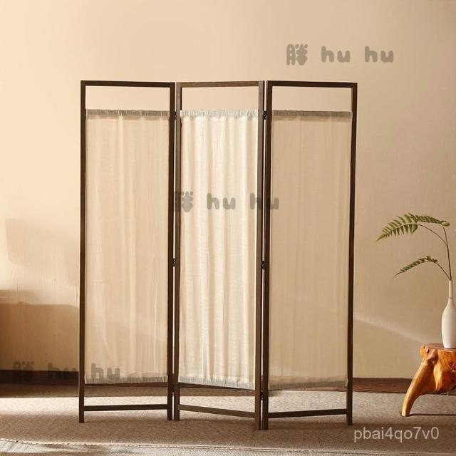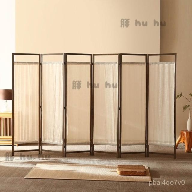 屏風 中式簡約禪意布藝亞麻入戶屏風 遮擋客廳移動書房茶室遮擋裝飾實木屏風