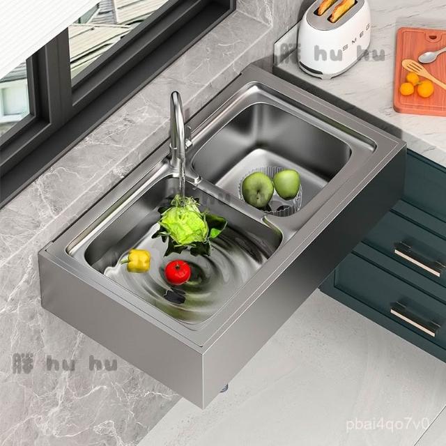 商用廚房洗菜盆 304不銹鋼洗手盆 帶支架 一體洗碗池 家用水槽 大單槽